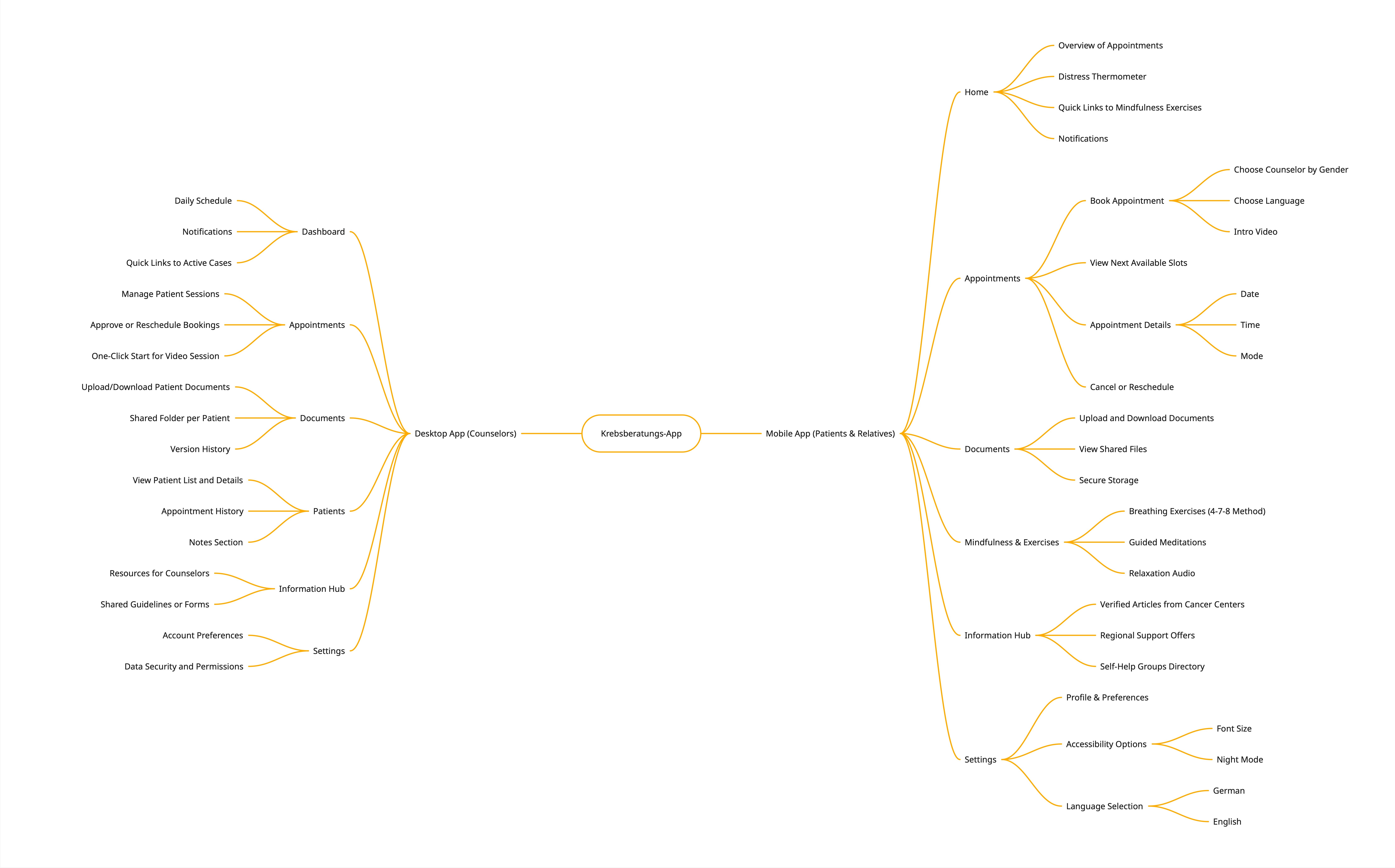 A human-centered platform uniting cancer patients, their families, and psycho-oncology centers across Germany. Mobile supports patients and relatives; desktop supports counselors, so access is clear, paperwork is lighter, and human care stays primary.